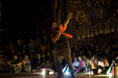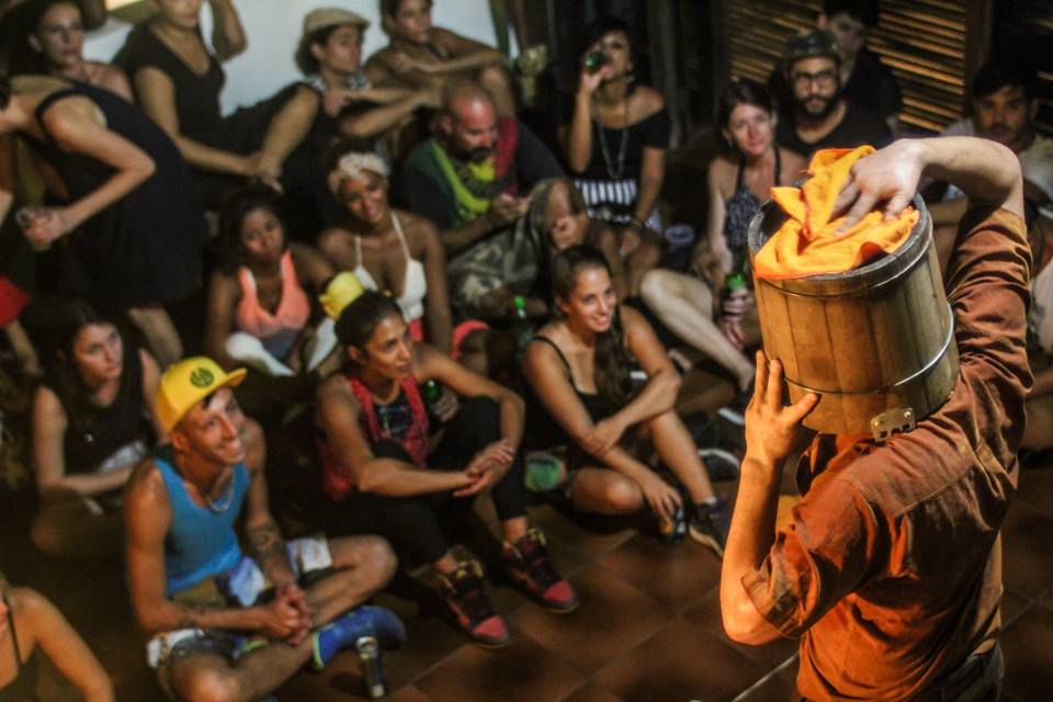 O espetáculo originou-se de um número de malabarismo que começou em 2014. O número se criou com tentativa e erro e circulou pelo Brasil, Uruguai, Paraguai e Argentina em diversos Festivais, Convenções, e Noites de Variedades do Circo no Beco, Noite da Rose Saraivada Cirqueira, Virada Cultural, entre outras entre os anos de 2015 e 2017.