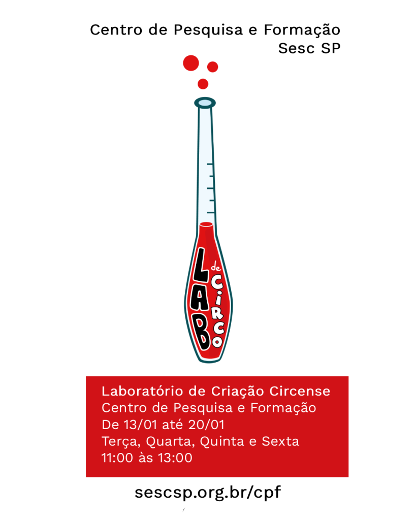 Nos dias 13, 14, 15, 16 e 20 de Janeiro de 2026 o @labdecirco em parceria com o Centro de Pesquisa e Formação do Sesc SP realiza uma edição teórica do Laboratório de Criação Circense. A 21ª edição do projeto terá foco no compartilhamento de metodologias e ferramentas voltadas à organização de processos criativos na construção de números circenses. A proposta é voltada para artistas do circo e tem como foco o desenvolvimento do processo aplicado à direção, pesquisa, investigação, criação e aprimoramento artístico, buscando fortalecer a autonomia artística dos participantes e oferecer suporte à criação e à estruturação de números autorais.