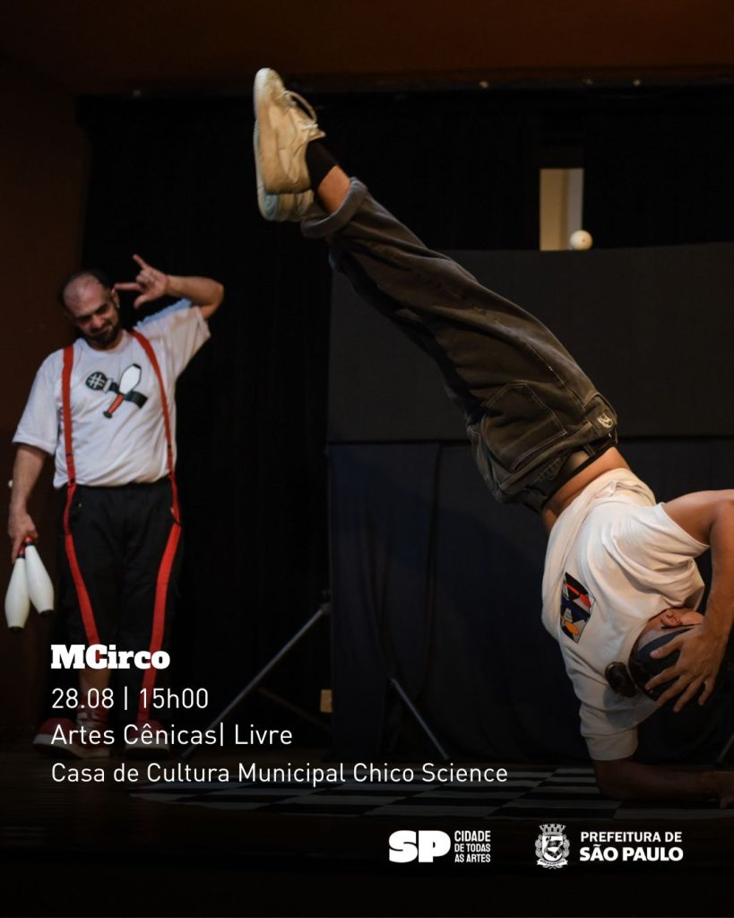 No final do mês de agosto (2025) tivemos o prazer de apresentar o espetáculo #MCirco no “Palco Sabotage”, na Casa de Cultura Chico Science em evento realizado pela própria Casa de Cultura junto à SMC.